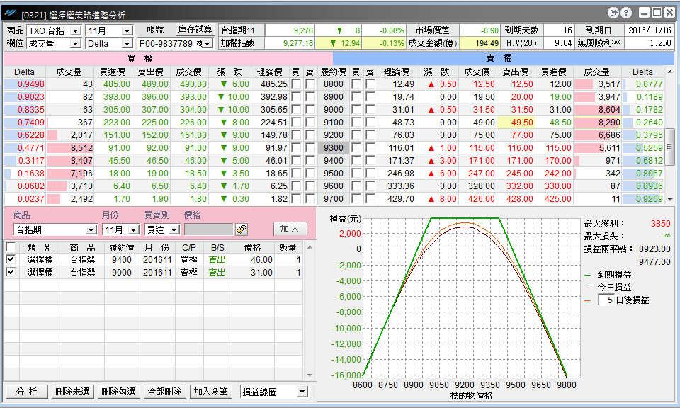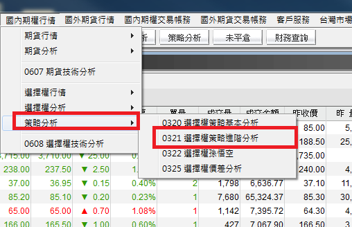 從Easywin裡面>>國內期權行情>>策略分析>>選擇權策略進階分析。 進一步了解自己的策略屬性